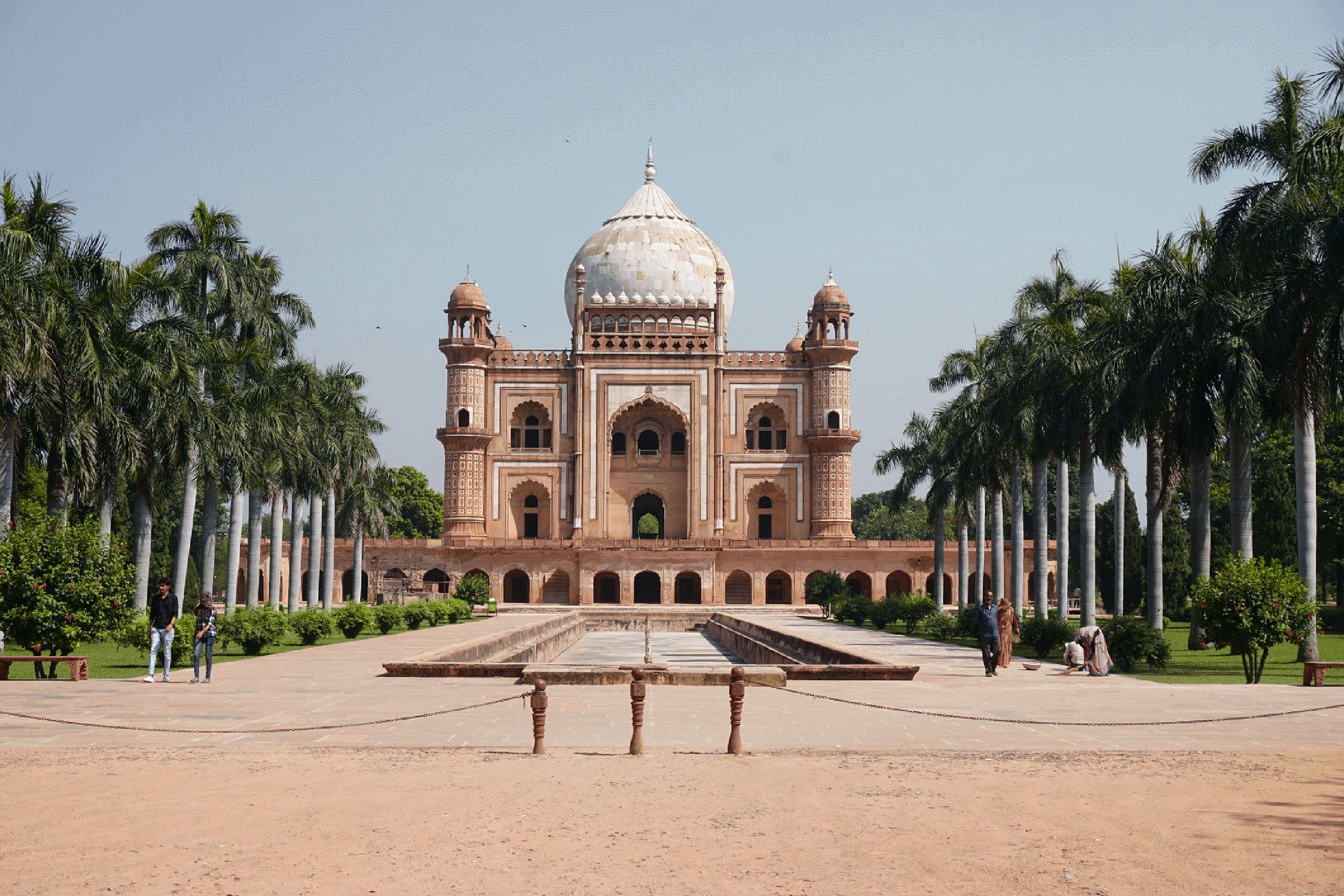 Ce mausolée de style moghol a été construit en 1570 à la mémoire de l’empereur Humayun. Il a inspiré la conception du Taj Mahal par ses jardins symétriques, son dôme blanc et ses façades en grès rouge. Le site se distingue par l'intégration de l'architecture persane avec les techniques indiennes. Il est entouré de jardins persans (charbagh) et de plusieurs tombes royales secondaires.